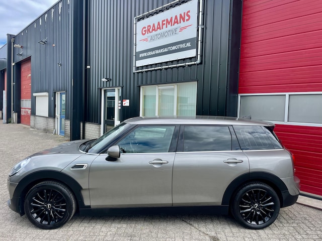 Mini Clubman in de prachtige kleur Melting Silver, bouwjaar Nov. 2018 met maar 68.000km en een 1,5 liter motor met 102PK en een automatische transmissie (Steptronic) met o.a. de volgende opties: Apple Carplay, Navigatie, Multi stuur van leder, cruise controle, Intelligent safety, Mini 17 inch zwarte velgen, climate control (digitale airco), bluetooth handsfree kit met USB, park distance control ACHTER, regen en licht sensor, Mini Yours interieur Piano Black, led-ring rondom instrumentenpaneel, privacy glass achter etc. etc.