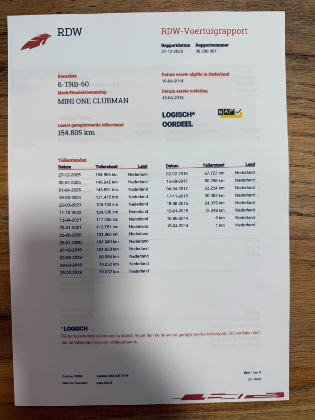 | Kilometerstand | 154.805 km |