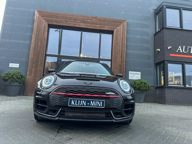 Zeer exclusieve facelift Mini Clubman John Cooper Works ALL4 F1 sportautomaat met een 306pk motor uitgevoerd in de prachtige kleur Midnightblack.Deze in werkelijk nieuwstaat verkerende Mini is uitgerust met alle maar dan ook alle denkbare opties oa:Climate control,vollederen interieur Carbon black,sportstoelen,stoelverwarming,virtual cockpit,breedbeeld dvd navigatie XL,Mini Connected XL,Harman Kardon soundsystem,head up display,adaptieve cruise control,keyless go,achteruitrijcamera,19" Jcw circuit spoke velgen,sportpakket,vierwielaandrijving,led verlichting,elektrisch bedienbare glazen panoramadak,5 persoons,privacyglass,lederen Jcw sportstuur met F1 flipperschakel,lichtpakket met Mini logo's,alarm,welcome pakket,dakrailing zwart,parkeersensoren voor en achter,parkassist(auto parkeert zelf in),F1 schakel op stuur,actieve voetgangersbeveiliging,lc scherm,virtual cockpit,Mini driving modus,donker dakhemel,mf stuur,Apple Carplay,dab radio,boordcomputer,blackline,regensensor,verwarmde voorruit,Union Jack achterlichten,vierwielaandrijving,armsteun,chili 2 pakket,alle boekjes+originele sleutels,Btw auto,1e eigenaar,85.000km origineel,nieuwprijs 71.900,-.Schitterende en unieke Mini Clubman Works in concoursstaat voor de echte liefhebber