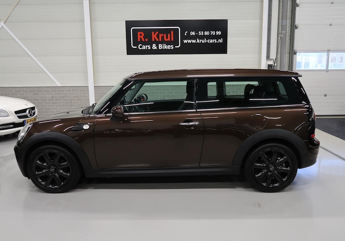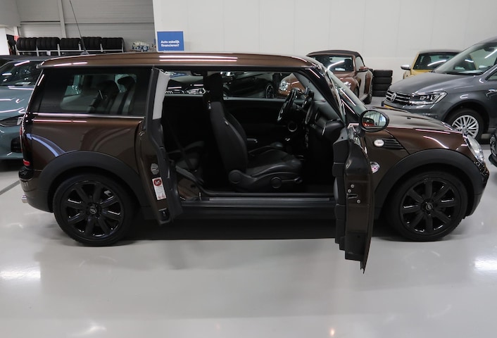 Door inruil verkregen, deze nette Mini Clubman One in Hot-Chocolate bruin metallic met zwarte accenten, hoogglans zwarte sportvelgen 17 inch met goede 4-seizoenen banden merk Hankook, sportstoelen met half lederen bekleding, airco-ecc, navigatie, isofix en 2 sleutels. Een Mini met uitstraling!. Kijk voor alle 48 foto's op onze website. Liever geen inruil.