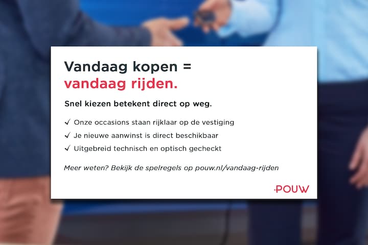 Wij hebben je auto op 130 technische punten gecontroleerd. Moet de onderhoudsbeurt plaatsvinden binnen 6 maanden of 10.000 kilometer (afhankelijk van wat het eerst komt)? Dan hebben wij die alvast uitgevoerd. De binnen- en buitenkant van de auto is professioneel gereinigd en de auto heeft een volle tank brandstof / accu. Bovendien voorzien wij je auto van 12 maanden Pouw-garantie.