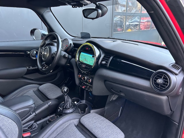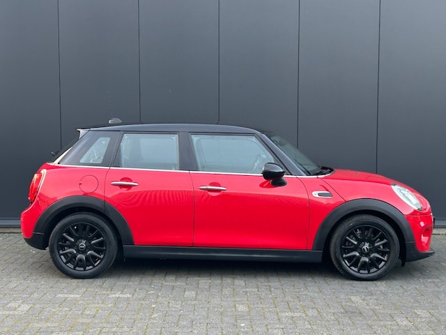 Keurige Nederlandse dealer onderhouden Mini Cooper 1.5 5-Deurs in Chili Red en half lederen sportstoelen. Deze sportieve Mini is voorzien van o.a. navigatie professional, head up display, LED verlichting, parkeersensoren, cruise control, comforttoegang, Mini Yours lederen sportstuur, lichtpakket en zwarte sportvelgen.