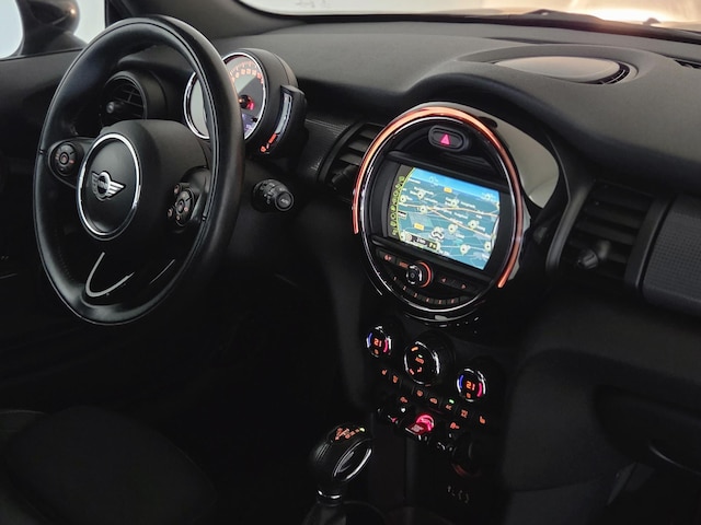 Deze Mini is voorzien van knoppen op het stuur om het full map navigatiesysteem en het audio-installatiesysteem te bedienen. U verwacht natuurlijk automatische airconditioning in deze auto, en die is er dan ook. U kunt bij het inparkeren natuurlijk niet aan alle kanten ogen hebben. Daarom is deze Mini Mini voorzien van parkeersensoren! Om de veiligheid onderweg te verhogen, heeft deze Mini zowel een automatisch inschakelbare verlichting als een regensensor aan boord, zodat hij zelf de verlichting en de ruitenwissers kan inschakelen. Cruise control houdt automatisch de ingestelde snelheid vast. Zo kunt u zich volledig op het verkeer concentreren. Ook is de Mini uitgerust met: sportstuurwiel, keyless entry, centrale deurvergrendeling met afstandsbediening en boordcomputer.