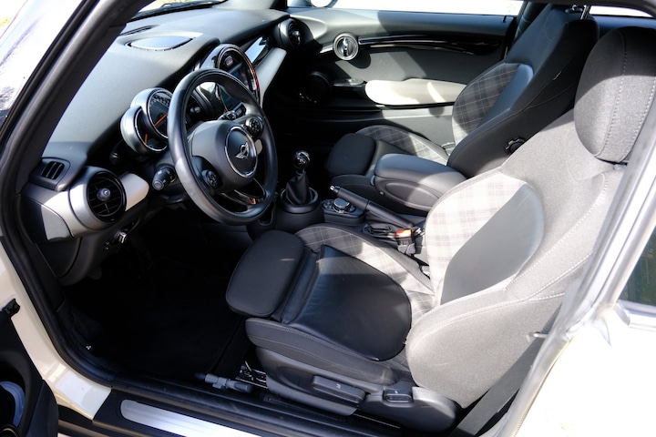Dit is niet zomaar een Mini Mini. De hoge prestaties van de motor, het strak afgestelde onderstel en de uitgekiende verhoudingen van de transmissie staan garant voor bergen rijplezier. De aandrijving van deze Mini wordt verzorgd door een driecilinder motor en een handgeschakelde zesversnellingsbak. Lekker hoor, die verwarmbare voorstoelen. Helemaal op koude dagen. De sportstoelen zien er niet alleen prachtig uit, maar zijn ook functioneel, zoals u kilometer na kilometer zult merken. Ook 16 inch lichtmetalen velgen, halflederen bekleding, warmtewerend glas, in delen neerklapbare achterbank en verwarmde ruitensproeiers zijn aan boord.