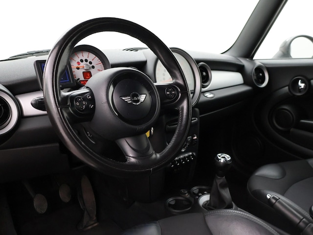 Origineel Nederlandse Cooper 1.6 122 PK met 6 versnellingen, Goed onderhouden, in 10-2025 nog voor 1435 euro onderhoud gehad, Pepper White met zwart dak en zwarte spiegels, Zwarte striping en 17 inch zwarte velgen, Zwart half leder sportinterieur, Cruise control, Navigatie Portable MINI, Airco, Leder stuurwiel met audiobediening.