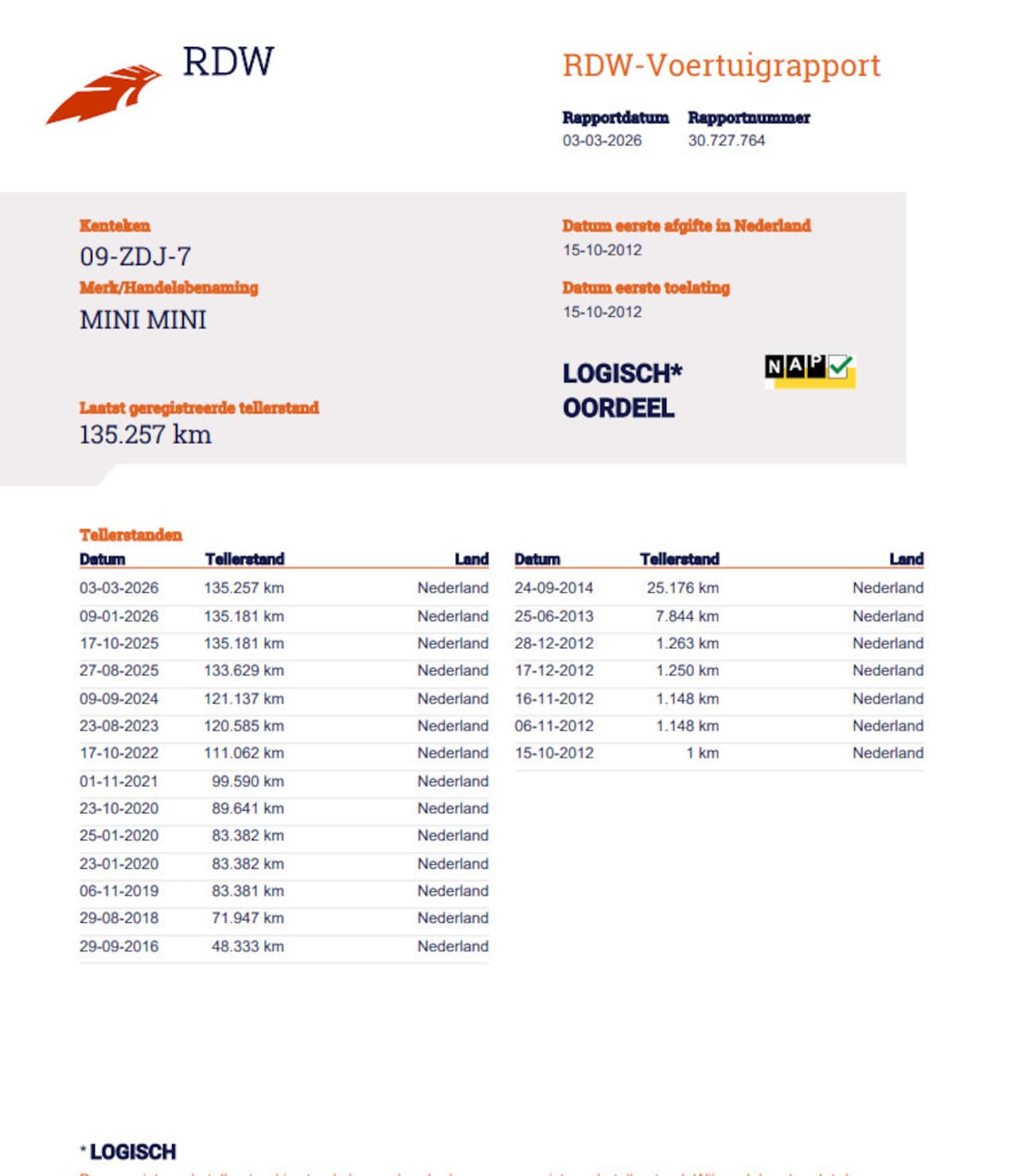 | Kilometerstand | 135.257 km |