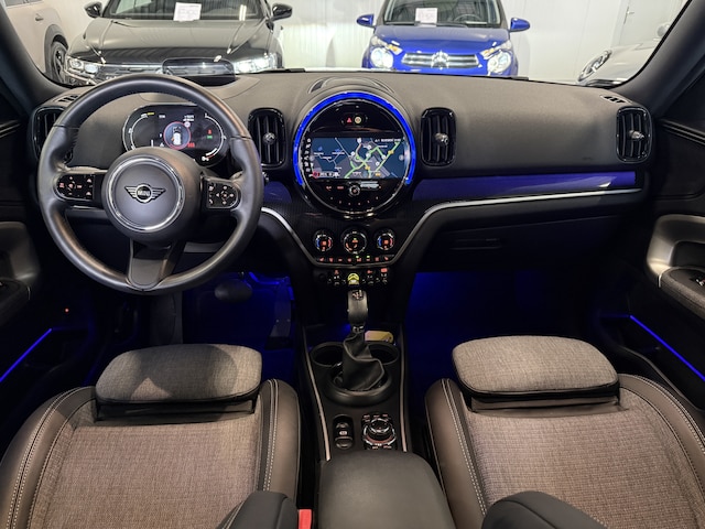 Schitterende Mini Countryman 2.0 Cooper SE ALL4 Plug in Hybrid in Moonwalk Grey metallic met 19 inch licht metalen velgen en Black Optic pakket. Deze Mini is bijzonder compleet uitgerust met onder andere de volgende opties: Elektrische bedienbare voorstoelen met memory, half lederen bekleding, uitgebreid LED interieur sfeer verlichtingspakket, Apple Carplay, achteruitrijcamera, navigatie, virtuele cockpit, adaptieve cruise control, keyless entry, parkeersensoren etc..