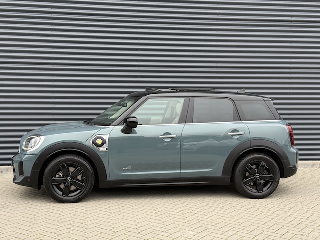 Schitterende Mini Countryman 2.0 Cooper SE ALL4 Plug in Hybrid in Sage Green metallic met hoogglans zwarte licht metalen velgen. Deze Mini is bijzonder compleet uitgerust met onder andere de volgende opties: Panorama dak, elektrische bedienbare voorstoelen met memory, lederen bekleding, Harman Kardon Audio, LED interieur sfeer verlichtingspakket, Apple Carplay, achteruitrijcamera, navigatie, virtuele cockpit, Head Up display, adaptieve cruise control, keyless entry, parkeersensoren voor + achter met parkeer assistent, etc..