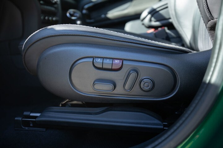This particular version immediately stands out with its distinctive appearance in Racing Green with a white roof and white mirror caps, a classic Mini combination that gives the car a sporty and premium look. The interior features leather sport seats that are electrically adjustable and equipped with a memory function, allowing the ideal seating position to be easily saved.