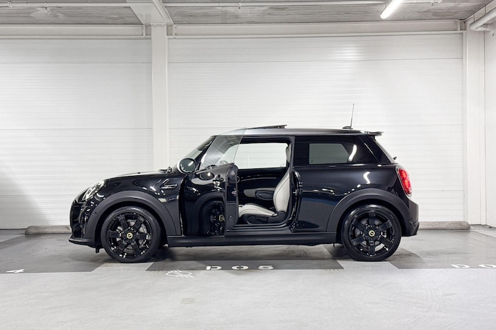 Voor het overzicht tijdens iedere rit is deze Mini Mini Electric voorzien van een gemakkelijk afleesbaar digitaal dashboard. De achteruitrijcamera maakt inparkeren gemakkelijker dan ooit. Als u de adaptive cruise control inschakelt, regelt de auto zelf de snelheid en de afstand tot de auto voor u. De speciale app verbindt met Connected Services, die de status van vitale functies bijhoudt en waarschuwt als u bijvoorbeeld moet tanken, de bandenspanning moet controleren of olie moet bijvullen. Het high performance audiosysteem produceert krachtige bassen en heldere hoge tonen. Deze Mini is voorzien van full map navigatiesysteem, automatische airconditioning, DAB ontvangst, regensensor, sportstuurwiel en buitentemperatuurmeter.