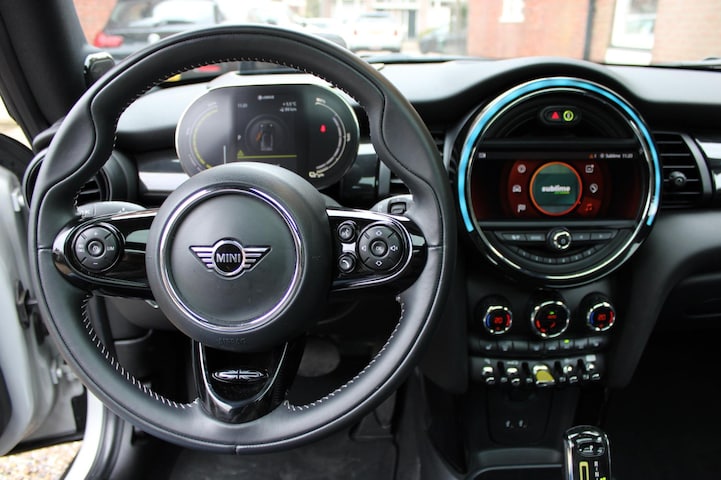 Het is niet alleen maar een stoer uiterlijk, deze Mini Mini Electric biedt ook de sportieve rijkwaliteiten die u zoekt. Dankzij het elektrisch bediende glazen panorama dak en het heerlijke lederen interieur is het soms bijna jammer dat u op uw bestemming moet uitstappen. Koude start? Niet met de verwarmbare voorstoelen! Sportief rijden stelt eisen aan een stevige zitpositie voor rijder en bijrijder. Vandaar de strakke sportstoelen! Verblinding van tegenliggers is er niet meer bij, dankzij de koplampen met matrix LED-verlichting. En toch de kwaliteit van daglicht in het donker! Ook 17 inch lichtmetalen velgen, dakspoiler, in delen neerklapbare achterbank en verwarmde ruitensproeiers horen tot de voorzieningen op deze auto.