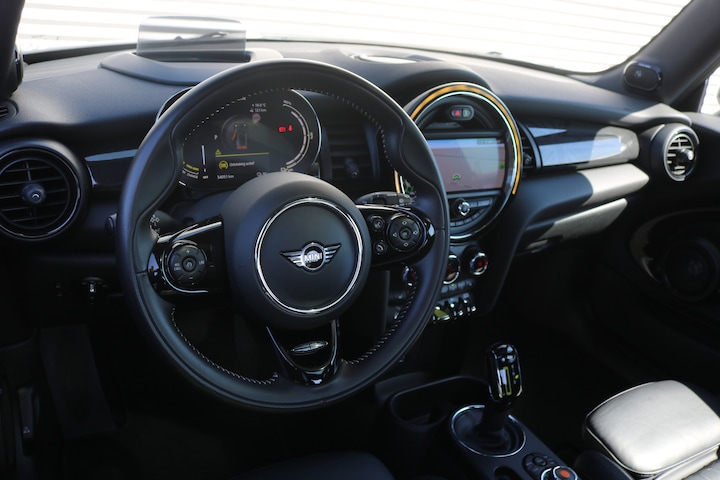 Het digitale dashboard vertelt u onderweg alles dat bijdraagt aan een veilige, efficiënte rit. Een handige optie is de achteruitrijcamera. Achteruitrijden, inparkeren en manoeuvreren gaat gemakkelijker dan ooit. Wat is de onderhoudsstatus van deze auto? U checkt het snel, simpel en overal via uw smartphone. Deze auto kent elke bestemming als z'n broekzak, dankzij het full map navigatiesysteem. Omdat u nu eenmaal niet overal ogen heeft, is deze MINI Electric voorzien van een achteropkomend verkeer waarschuwing die registreert wanneer de afstand tot uw achterligger te krap is. De MINI is standaard voorzien van: automatische airconditioning, draadloos opladen, multifunctioneel lederen stuur, DAB+ radio, regensensor en cruise control.