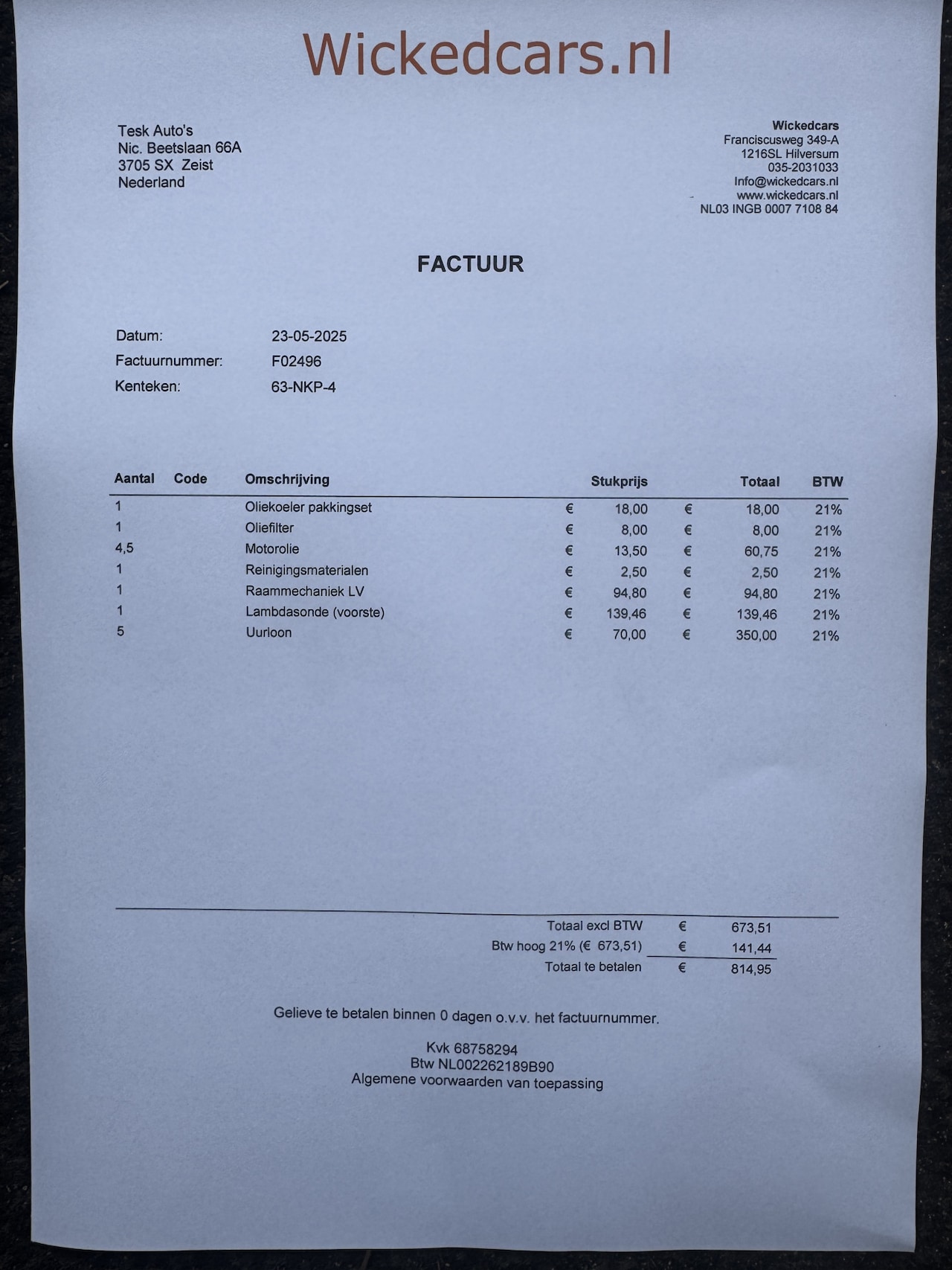 Bij aflevering