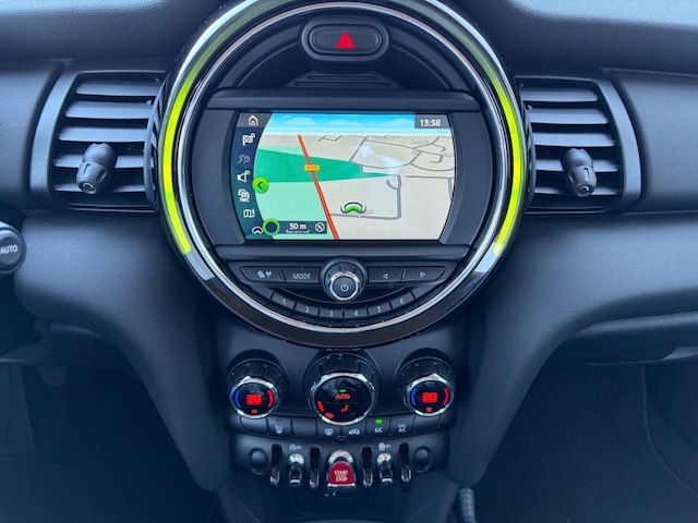 Origineel Nederlandse Mini One 1.5 voorzien van navigatie full map, Apple Carplay, cruise control, lederen sportstuur met functietoetsen, armsteun, USB, Bluetooth, automatische airco en sportvelgen.