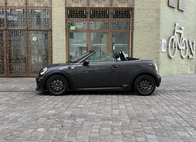 Prachtige Mini Cooper S Roadster is uitgevoerd in het chique Eclipse Grey metallic, met een warm Toffy lederen interieur. Het JCW pakket geeft de Mini spieren.