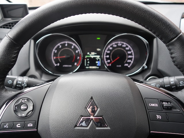 Zodra u in de achteruit schakelt, gaat de achteruitrijcamera in werking en heeft u een perfect zicht op alles wat zich achter de auto afspeelt. De electronic climate control zorgt voor een prettige binnentemperatuur. Met de audiobediening op het stuur heeft u altijd twee handen beschikbaar om te rijden. Met de DAB-ontvanger luistert u naar glasheldere digitale radio. De auto neemt u werk uit handen doordat hij zelf veel in de gaten houdt. Een regensensor en een automatisch inschakelbare verlichting nemen waar wanneer de ruitenwissers en het licht aan moeten. De uitrusting van deze Mitsubishi is met cruise control, keyless entry, automatisch dimmende binnenspiegel, boordcomputer en verstelbaar stuur behoorlijk compleet.