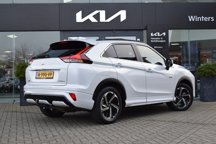 Sportieve, ruime en complete Eclipse Cross 2.4i PHEV 4WD Prestige o.a. voorzien van ECC-Airco, Trekhaak, Cruise control, Speed Limiter, Navigatie, Achteruitrijcamera, Bluetooth, Apple Carplay & Android auto, Armsteunen, Leder/Alcantara, Electrisch verstelbare bestuurdersstoel, Stoelverwarming, In delen neerklapbare achterbank, Privacy glas, Keyless Entry met start/stop-button, 18" LMV, Parkeersensoren voor + achter en 8 jaar Fabrieksgarantie! Verkoopprijs € 25.920,- incl. Basis Service-pakket. Rijklaarprijs € 26.515,- incl. FullService-afleverpakket van € 595,-.