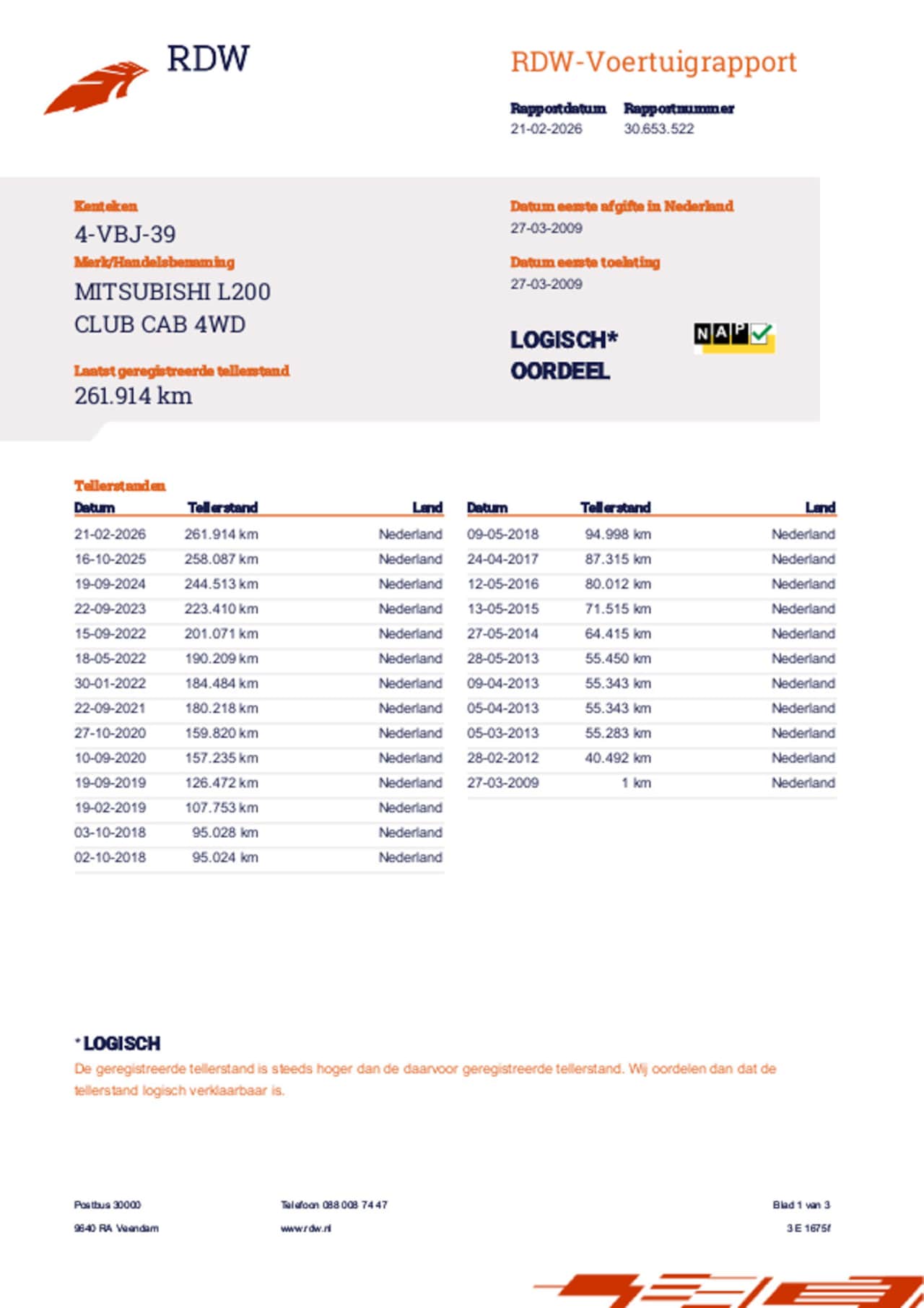 | Kilometerstand | 261.914 km |
