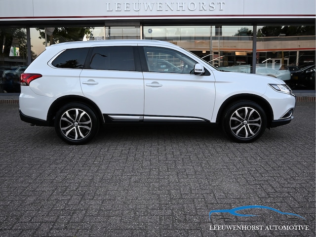 De witte metallic lak, het donkere glas en de 18 inch lichtmetalen velgen geven deze Outlander en bijzondere uitstraling.