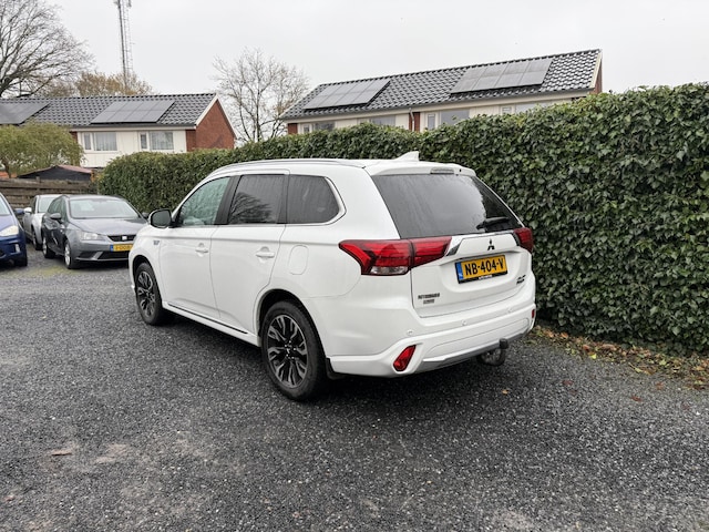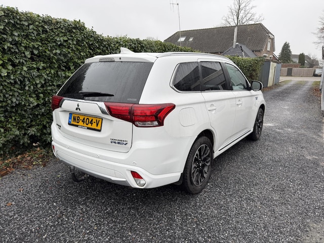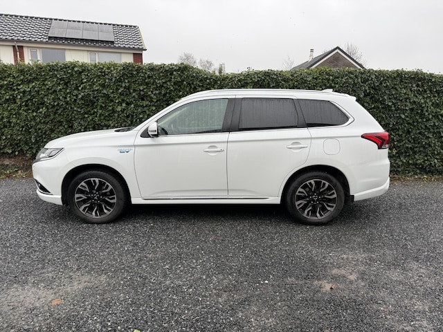 Mitsubishi doet z'n reputatie als sterk merk eer aan: Drive your ambition! Mooier kan het eigenlijk niet: de combi van elektromotor en verbrandingsmotor. Met deze hybride Mitsubishi Outlander kunt u alle kanten op. Stel u voor: zoevend over de snelweg terwijl het gulle daglicht het lederen interieur binnenvalt door het elektrisch bediende glazen panorama dak. En wat gemak betreft: daar zorgt onder andere de elektrisch bedienbare achterklep voor. Tijdens koude winterdagen verjaagt uw stoelverwarming de kou en maakt het rijden heerlijk comfortabel. Zo'n verwarmd stuurwiel is een comfortabele extra, zeker in de winter. Ook 18 inch lichtmetalen velgen, LED koplampen, donker getint glas achter, in delen neerklapbare achterbank, LED-achterlichten en snelheidsafhankelijke stuurbekrachtiging horen tot de voorzieningen op deze auto.