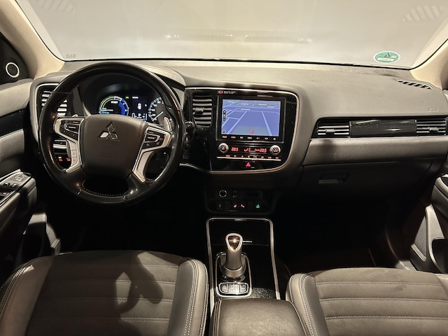 Dat u het milieu wilt sparen, wil nog niet zeggen dat u aan rijcomfort moet inleveren. De Mitsubishi Outlander is een comfortabele en ruime hybride auto. Onder de motorkap een elektromotor en een verbrandingsmotor. Veel duurzame kilometers dus! Tijdens gure dagen is het prettig zitten in de verwarmbare voorstoelen. Als u blij wordt van licht en ruimte dan zult u zeker genieten van het elektrisch bediende panoramadak. De achterklep opent automatisch met een druk op de knop. Handig als u met volle handen staat. Aan een fijn opwarmertje in de kille dagen is gedacht, in de vorm van een verwarmd stuurwiel. Natuurlijk behoren 18 inch lichtmetalen velgen, LED koplampen, extra getint glas, in delen neerklapbare achterbank, LED-achterlichten en verstelbare lendensteunen ook tot de uitrusting van deze complete auto.