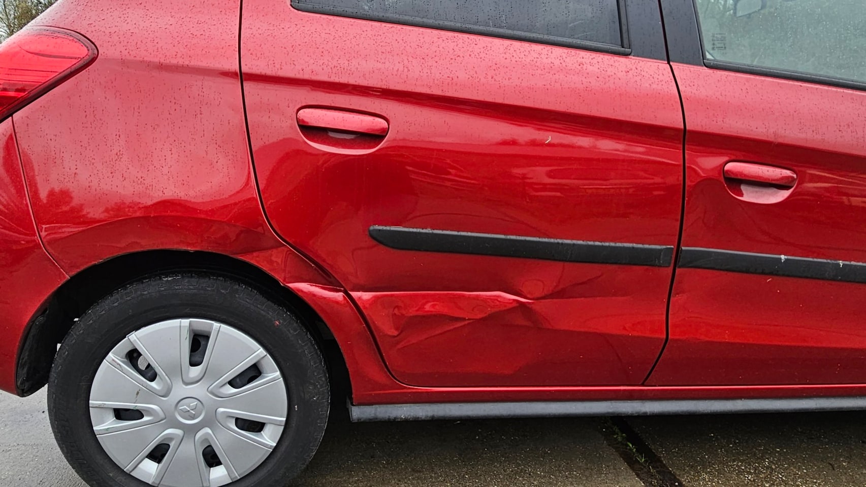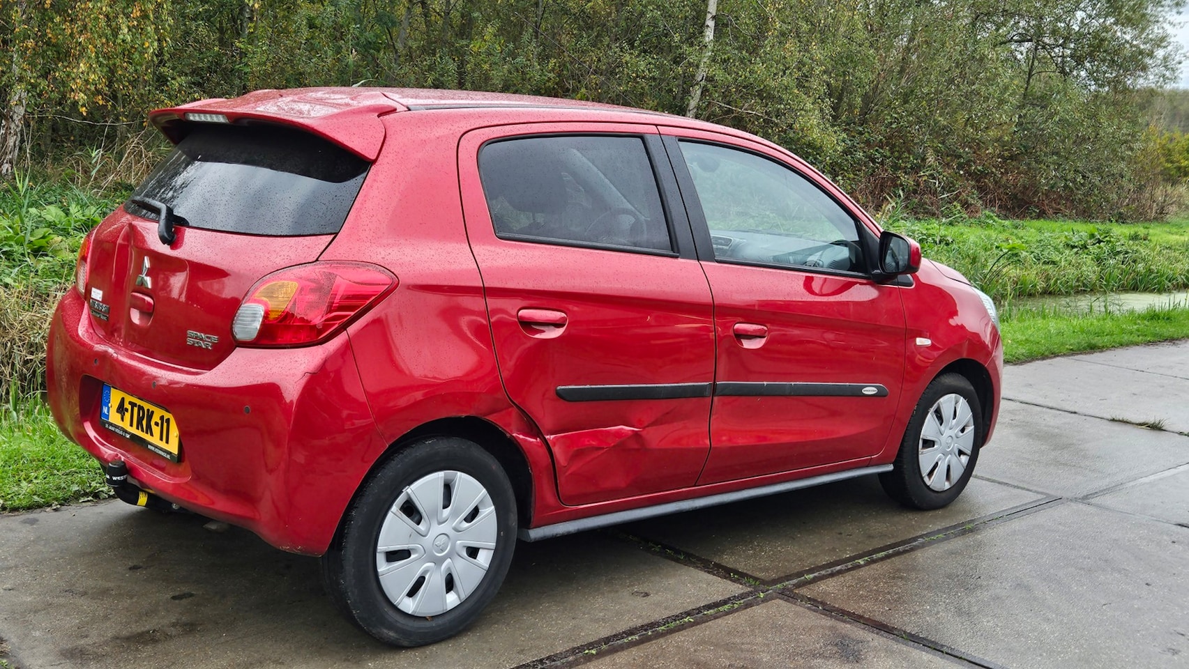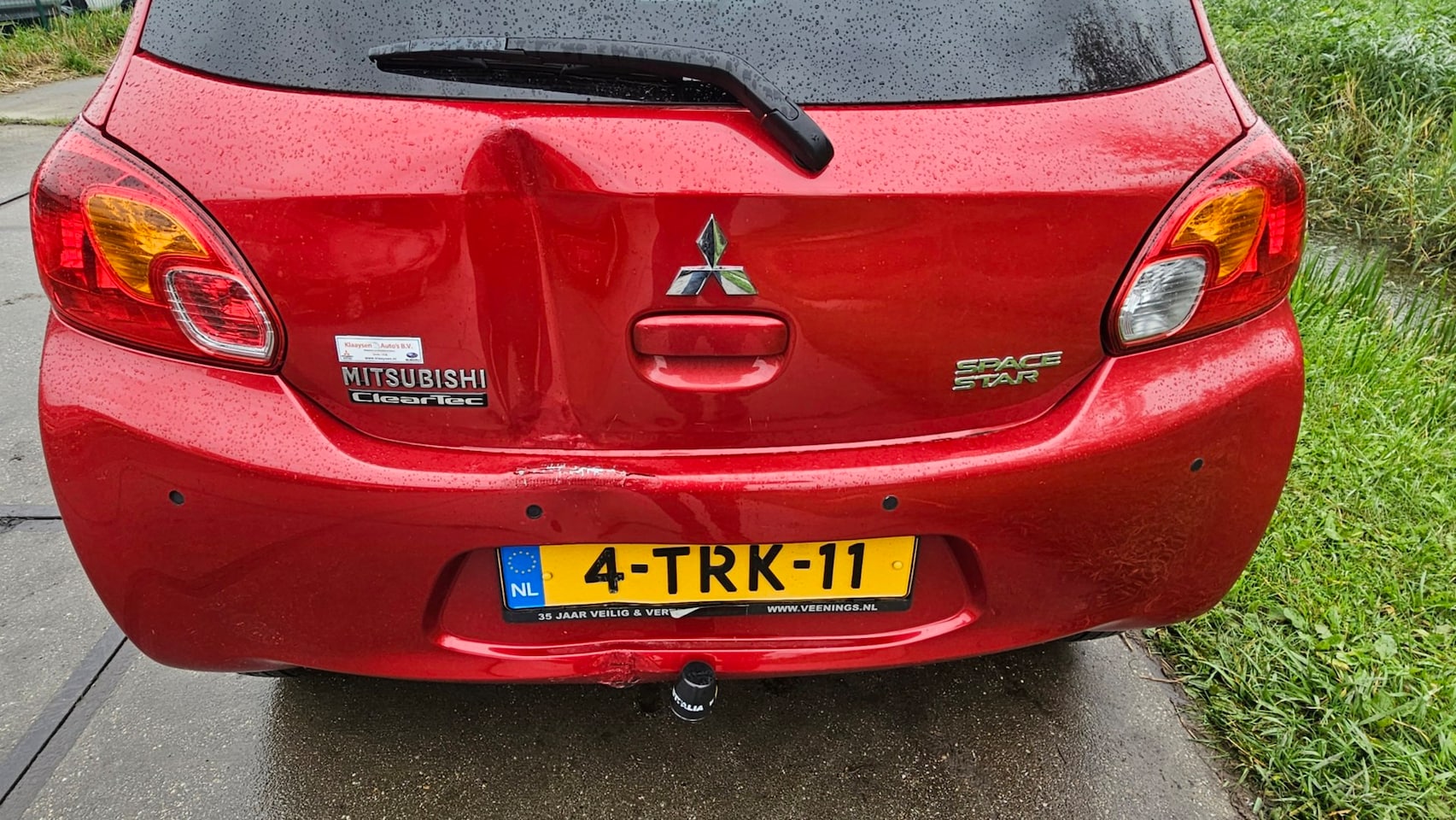 Automaat met achterschade en zijschade recht op zijn wielen