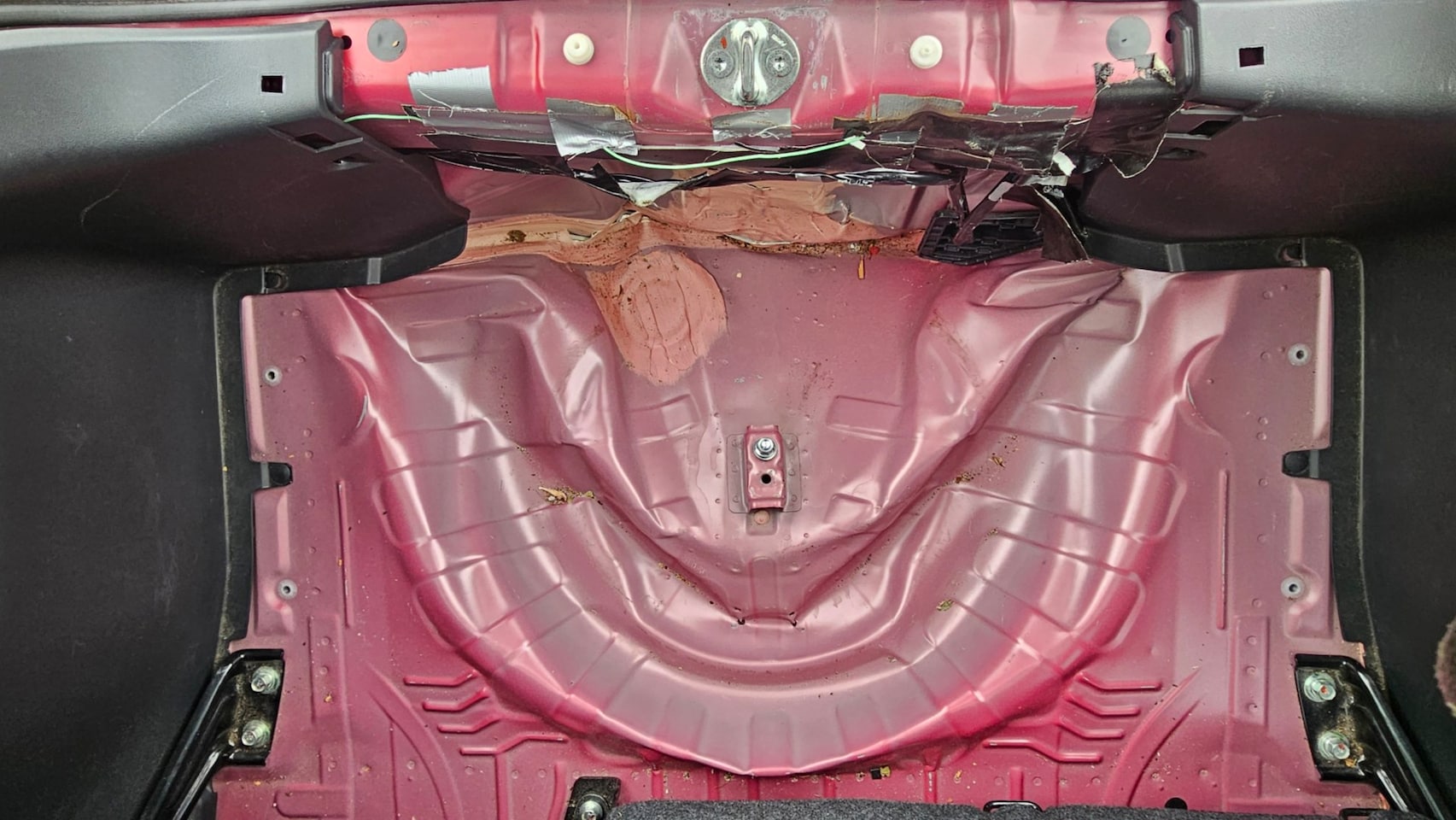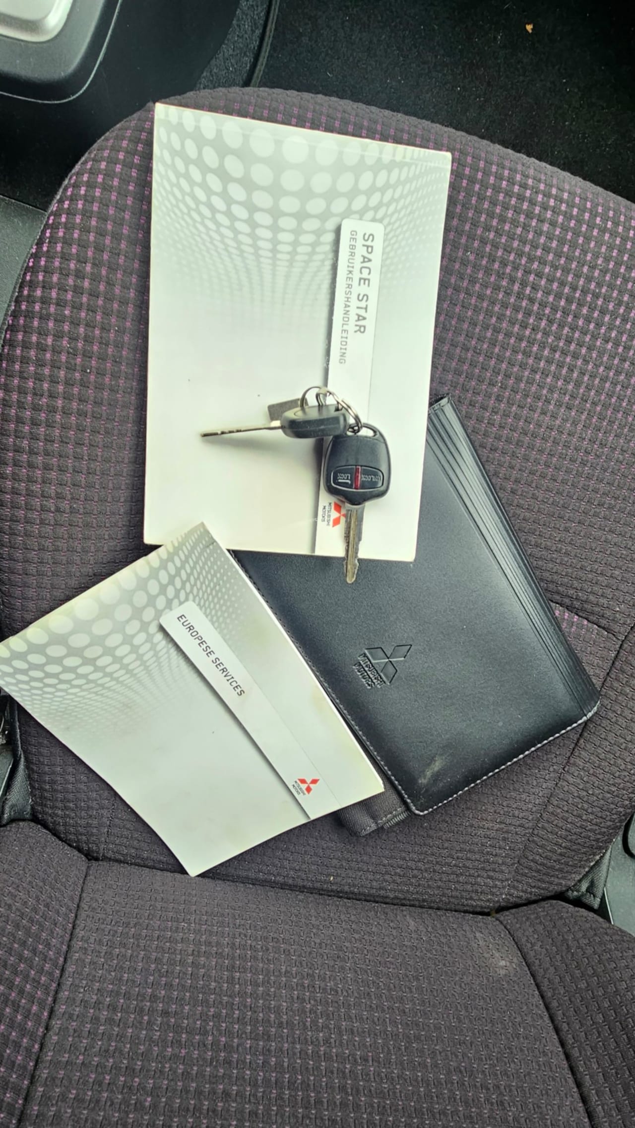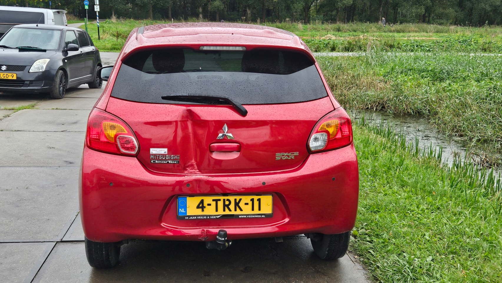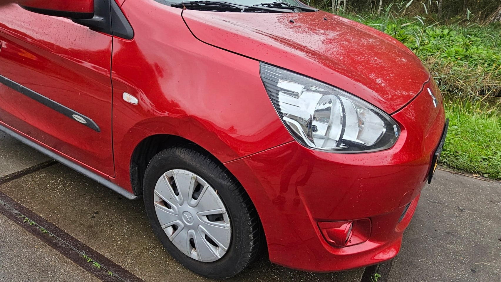 Automaat met achterschade en zijschade recht op zijn wielen