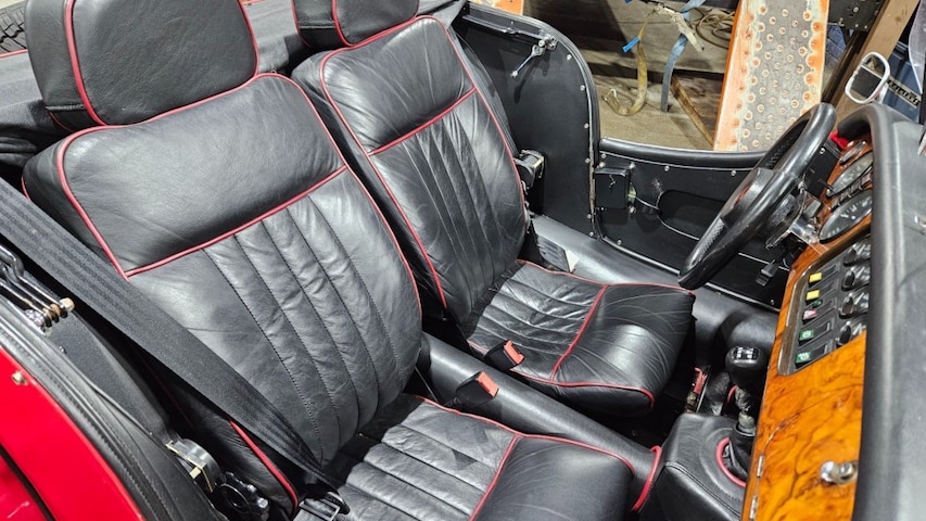 Zwart lederen bekleding met rode bies. Blackleather uphotsetry red piping