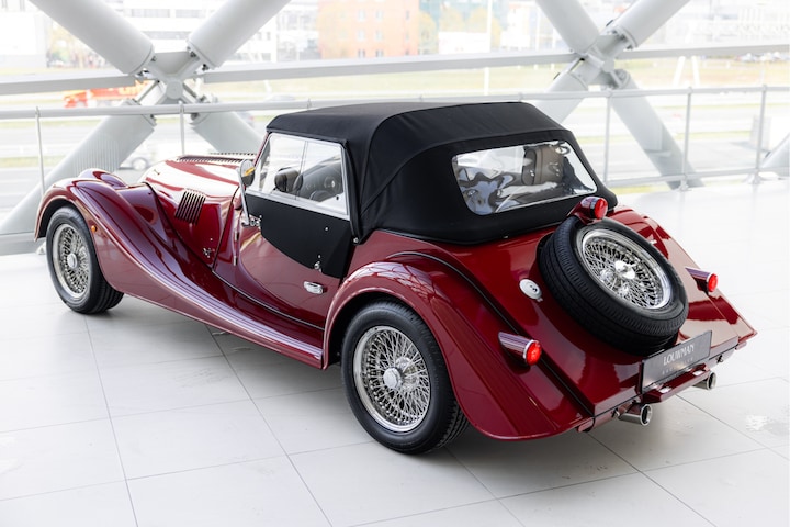 Deze Morgan Plus Four 2.0 is een auto die direct laat zien waar het merk voor staat. Geen trends, geen haast, maar een duidelijke eigen koers. De Plus Four bestaat al decennia, maar is met deze generatie opnieuw ontwikkeld, zonder het karakter te verliezen waar Morgan om bekendstaat. Dit exemplaar is uitgevoerd in Fire Red metallic, een kleur die perfect past bij het klassieke ontwerp. In combinatie met de chromen details, spaakvelgen en het reservewiel achterop ontstaat een beeld dat direct herkenbaar is. Het is een auto die niet schreeuwt om aandacht, maar die het vanzelf krijgt.