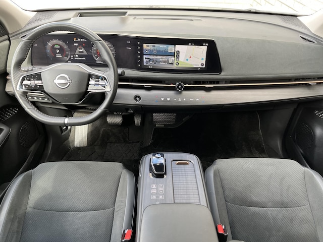 Druk het gaspedaal in en voel de fenomenale kracht van de elektromotor. In een elektrische auto rijdt u tegelijk dynamisch en ontspannen. Een elektrische auto is echt niet meer alleen voor korte ritjes. Het rijbereik van deze auto biedt voldoende ruimte voor uw dagelijkse ritten. Daardoor kan het opladen vaak 's nachts gebeuren. Neem plaats op de comfortabele stoelen. Dankzij de elektrische bediening en het geheugen is het eenvoudig om hierin de beste zitpositie te vinden. Licht en lucht komen onbelemmerd binnen als het elektrisch bediende glazen panoramadak met één druk op de knop wordt geopend. De achterklep opent automatisch met een druk op de knop. Handig als u met volle handen staat. Bij deze Nissan Ariya is aan alles gedacht, tot en met een verwarmd stuurwiel aan toe. De behaaglijkheid van de verwarmde achterbank zal ook uw passagiers bevallen. Tot de uitrusting van deze Nissan behoren ook 20 inch lichtmetalen velgen, extra getint glas, LED-achterlichten, verstelbare lendensteunen, snelheidsbegrenzer, elektrisch bediende ramen, elektrisch inklapbare buitenspiegels, LED-dagrijverlichting en in delen neerklapbare achterbank.