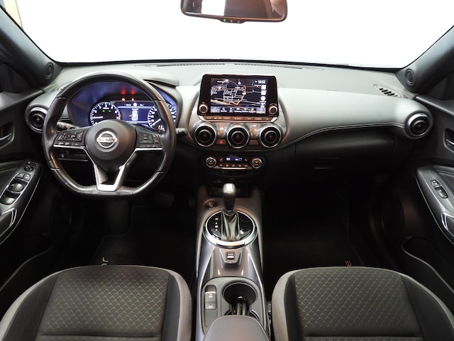 Doordachte techniek en intelligente systemen zijn pas waardevol wanneer ze een functie hebben. Meer dan wie ook hebben de Japanse autofabrikanten dit door, en dat merkt u ook aan deze Nissan Juke. Hij heeft een benzinemotor en een automatische transmissie. Deze Nissan Juke heeft verwarmbare voorstoelen, voor zowel bestuurder als bijrijder. De sportstoelen houden u en uw bijrijder goed op z'n plek tijdens het accelereren en bij het nemen van scherpe bochten. Natuurlijk behoren 19 inch lichtmetalen velgen, LED koplampen, extra getint glas, in delen neerklapbare achterbank, LED-achterlichten en snelheidsafhankelijke stuurbekrachtiging ook tot de uitrusting van deze complete auto.