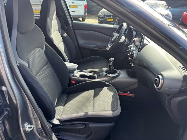 Laat u niets wijsmaken, deze Nissan Juke biedt alles wat u van een auto verlangt. De aandrijving van deze Nissan wordt verzorgd door een driecilinder motor en een handgeschakelde versnellingsbak. Sportief rijden stelt eisen aan een stevige zitpositie voor rijder en bijrijder. Vandaar de strakke sportstoelen! Natuurlijk behoren 17 inch lichtmetalen velgen, LED koplampen, extra getint glas, in delen neerklapbare achterbank, LED-achterlichten en snelheidsafhankelijke stuurbekrachtiging ook tot de uitrusting van deze complete auto.