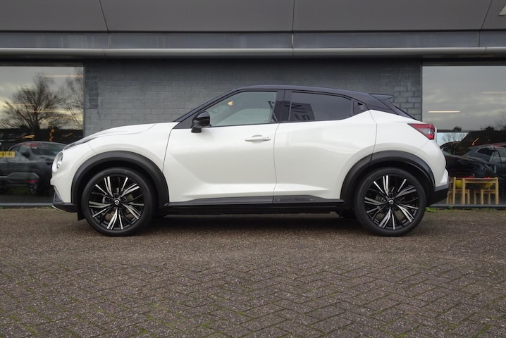 Nissan Juke 1.0 DIG-T 114pk N-Design in uitstekende staat met slechts 45.120 km. Sportieve en onderscheidende N-Design uitvoering, voorzien van luxe interieuraccenten, moderne infotainment, full LED-verlichting en 19” lichtmetalen velgen.