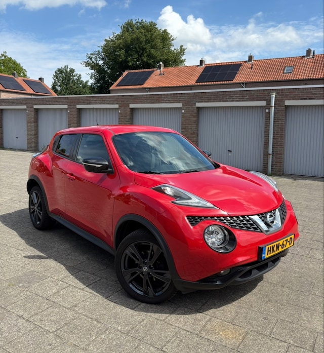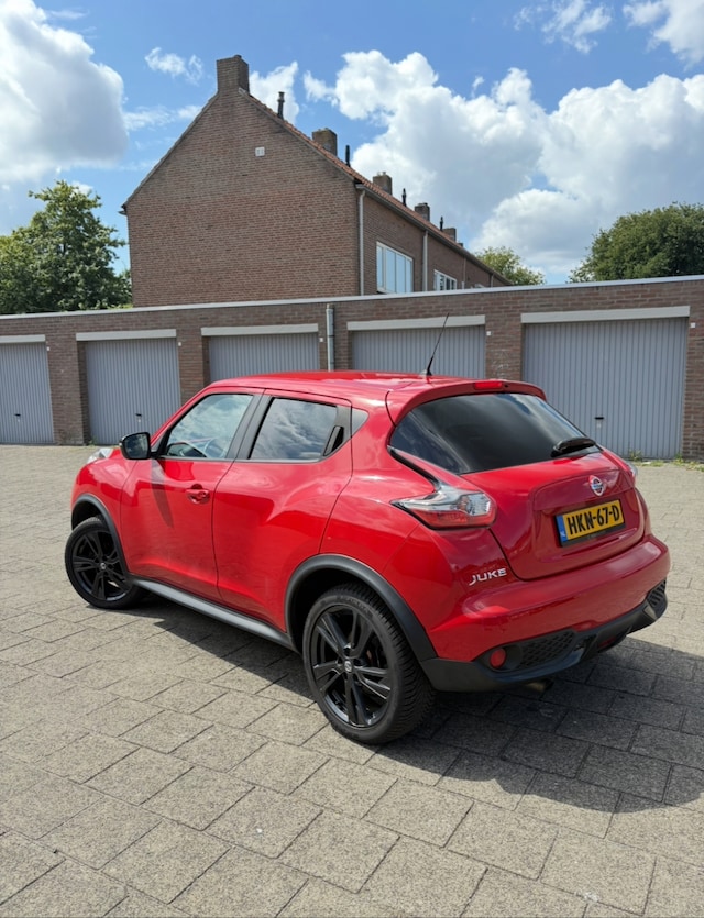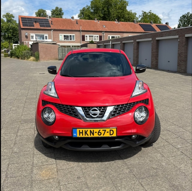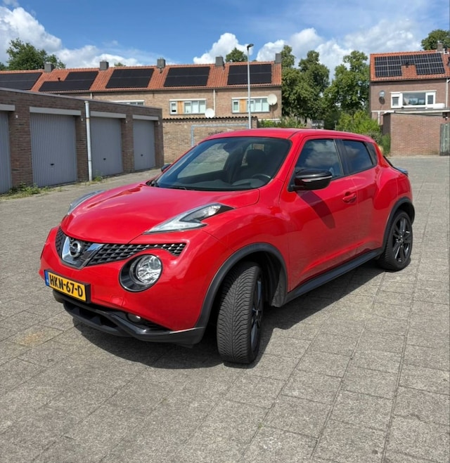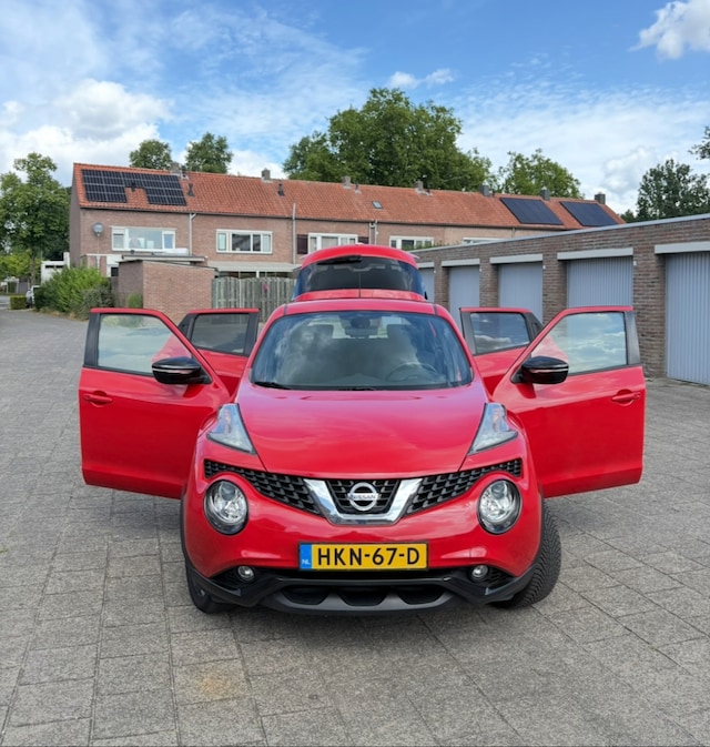 Goed onderhouden Nissan Juke uit 2017, in prachtige rode kleur en rijk uitgerust met moderne opties. De auto rijdt soepel, schakelt fijn en is zowel van binnen als buiten in zeer nette staat. Reeds is de distributie ketting vervangen en ook een onderhoudsbeurt gehad. Zeer mooie Nissan 18 inch lichtmetalen zwarte velgen, en all season banden.