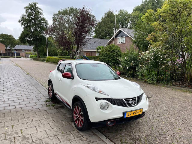 Deze Nissan Juke is uitgevoerd met een speciaal ombouwkit incl spoiler en lichtmetalen wielen., Deze accessoires accenten zijn speciaal voor de Juke ontwikkeld. Door deze opbouw krijgt de auto een extra onderscheid tegenover de standaard uitvoering.