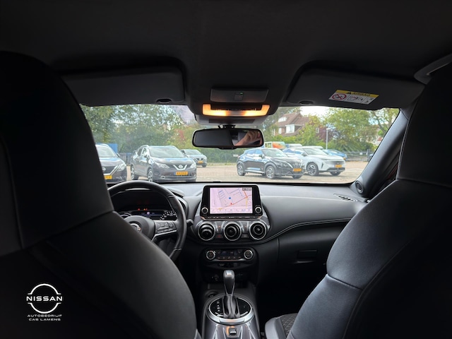 Twijfelen hoeveel ruimte u achter de auto heeft? Met de achteruitrijcamera met parkassistent weet u altijd hoeveel centimeter! Hoeveel gigabytes aan muziek wilt u meenemen? Met één stick in de usb-aansluiting kunt u uren en uren vooruit. Of het buiten nu warm is of koud, dankzij automatische airconditioning is het binnen altijd behaaglijk. De regensensor activeert automatisch de ruitenwissers als het regent of sneeuwt. Geen capriolen meer als u met armen vol de auto moet openen. De keyless entry heeft u al herkend en ontgrendelt de NISSAN Juke automatisch. Wat u ook in deze auto kunt vinden zijn WIFI-hotspot, adaptief TFT-instrumentenpaneel, buitentemperatuurmeter, automatisch dimmende binnenspiegel, lederen stuur en versnellingspook en isofix-aansluiting.