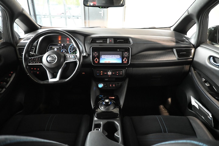 Zoals u mag verwachten van deze Nissan LEAF is hij uitgerust met een reeks aan actieve veiligheidssystemen. Belangrijk voor uw veiligheid en die van uw passagiers is de verkeersbord-detectie in deze auto. Het Lane-keeping systeem doet precies wat nodig is: waarschuwen en corrigeren bij onbedoelde overschrijding van de rijstrooklijnen. Forward collision warning helpt u om kop-staart aanrijdingen te voorkomen. Verder is deze auto uitgerust met dodehoekdetectie, hill hold functie, vermoeidheidsherkenning, autonoom remsysteem en bandenspanningcontrolesysteem.