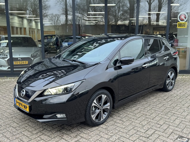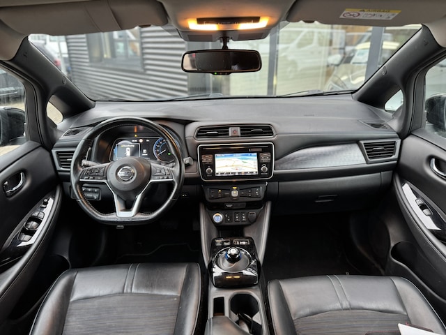Nissan heeft een uitstekende reputatie opgebouwd als het gaat om betrouwbare elektrische auto's. Kiest u voor deze LEAF, dan kiest u voor degelijke techniek van topklasse. U zult verrast zijn door de power van de elektromotor. En stil! Op koude en donkere dagen zijn de verwarmbare voorstoelen een uitkomst. De verwarmde achterbank is een luxe extra, speciaal voor de passagiers. Ook 17 inch lichtmetalen velgen, LED-dagrijverlichting, donker getint glas achter, in delen neerklapbare achterbank en LED-achterlichten zijn aan boord. De functie van de 360 graden camera in deze auto is om u een totaaloverzicht van de omgeving te geven, ongeacht hoe smal de straat of parkeerplek is. Adaptive cruise control houdt de ingestelde snelheid vast en houdt afstand tot het voertuig voor u. Wegwijs in elke wijk, stad of reisbestemming? Daarvoor zorgt het full map navigatiesysteem! Automatische airconditioning verwarmt of koelt het interieur met een druk op de knop. Alle audioknoppen letterlijk onder handbereik: dat kan met de audiobediening op het stuur. De uitrusting van deze Nissan is met DAB ontvangst, regensensor, keyless entry, automatisch dimmende binnenspiegel, lederen stuur en boordcomputer behoorlijk compleet.