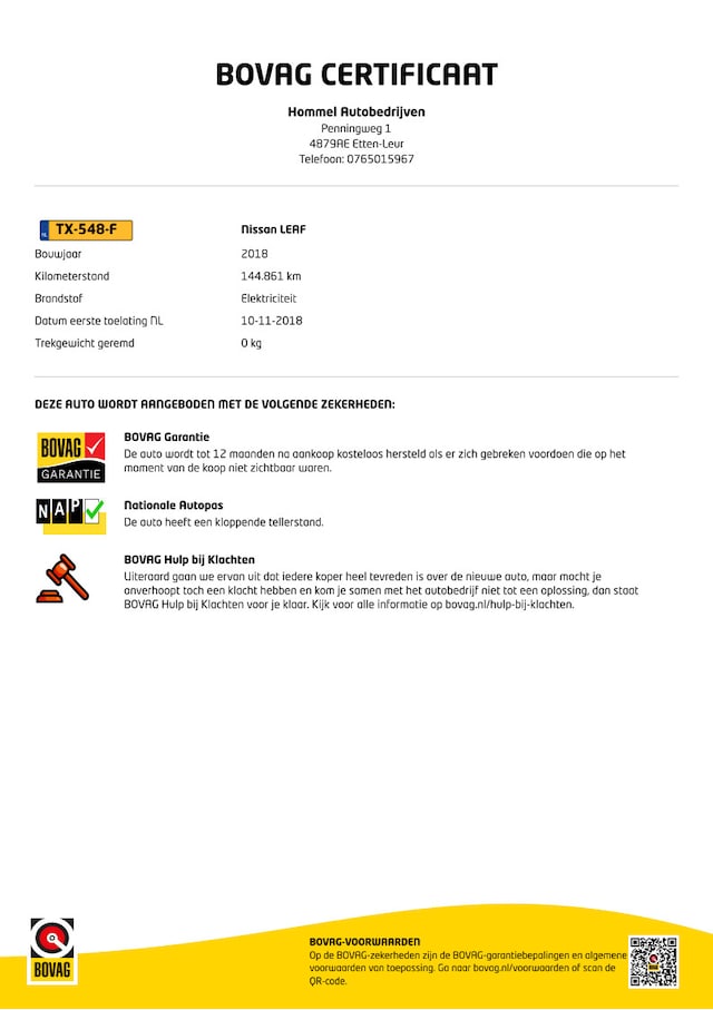- BOVAG Garantie 12 maanden