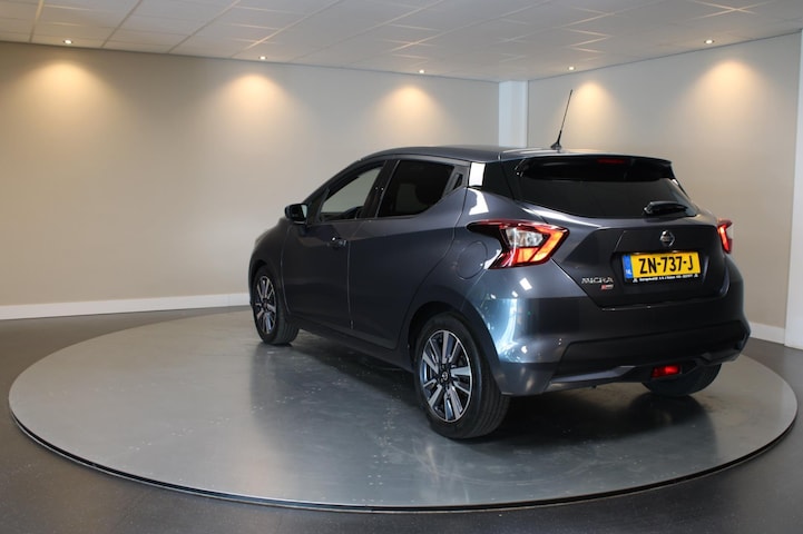 Alle technologie in de Nissan Micra is er op gericht om uw rit veilig en gemakkelijk te laten verlopen. De aandrijving van deze Nissan wordt verzorgd door een driecilinder motor en een handgeschakelde versnellingsbak. Bij de uitrusting van deze Nissan horen onder meer 16 inch lichtmetalen velgen, LED-dagrijverlichting, extra getint glas, in delen neerklapbare achterbank en snelheidsafhankelijke stuurbekrachtiging.