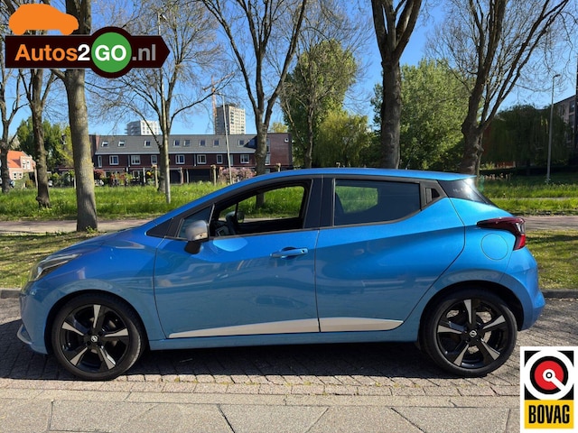 De achteruitrijcamera vergemakkelijkt achteruit inparkeren. U ziet duidelijk wat er achter de auto gebeurt. Soms wil je goed geluid kunnen voelen! Het high performance audiosysteem bedient u op uw wenken. Op een drukke weg heeft u soms ogen in uw achterhoofd nodig. De sensoren aan de achterzijde nemen die functie over en geven een achteropkomend verkeer waarschuwing als een achterligger te dicht op u zit. Achter het stuur van deze Nissan bent u niet alleen. De auto kijkt als het ware met u mee tijdens de rit. De regensensor schakelt de ruitenwissers in als het nodig is en de automatisch inschakelbare verlichting doet de lichten voor u aan. Natuurlijk is deze Nissan Micra voorzien van cruise control. Met full map navigatiesysteem, airconditioning, lederen stuur, centrale deurvergrendeling met afstandsbediening en boordcomputer is deze auto helemaal compleet.