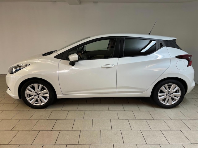 Nissan Micra 1.0 IG- T N- Connecta 100PK. Nissan heeft van de Micra een erg mooie auto gemaakt! Een prachtige vormgeving! Deze Micra heeft ook nog een erg mooie kleurstelling: parelmoerwit en het is een Connecta uitvoering. Die Connecta uitvoering maakt dat deze Micra heel veel opties heeft! Airco, navigatie, camera, Bluetooth, cruise control, regensensor, parkeersensoren, tweekleurig interieur, radio bediening op het stuur en zo gaat het nog wel even door met de vele opties! Onder de motorkap vind je een zeer zuinig 1.0 benzine motor en doordat hij een turbo heeft, heb je toch lekker veel pit tijdens het rijden! Hij is uit 2019 en er staat nog maar 100.000 kilometer op de teller. Van binnen en buiten ziet hij er nog als nieuw uit! De vorige eigenaar is er altijd erg zuinig op geweest! Zoek jij een leuke 5 deurs auto met een sportief uiterlijk? Met veel opties en een zuinige benzine motor? Dan heb je hem nu gevonden! Deze Nissan Micra heeft het allemaal! Maak snel een afspraak en kom langs in de showroom!