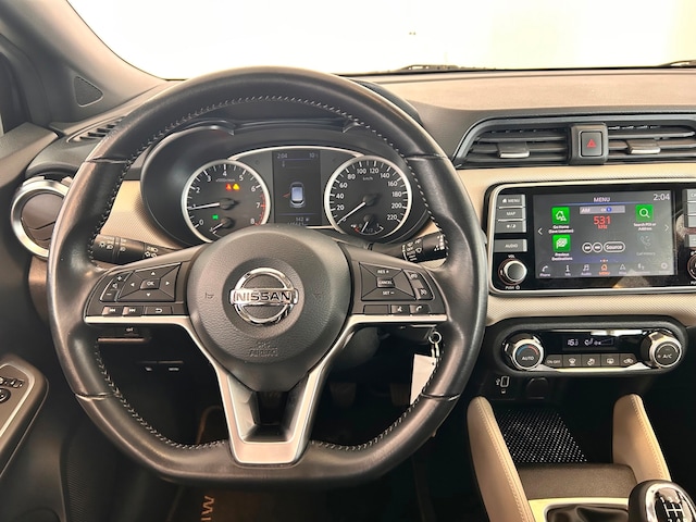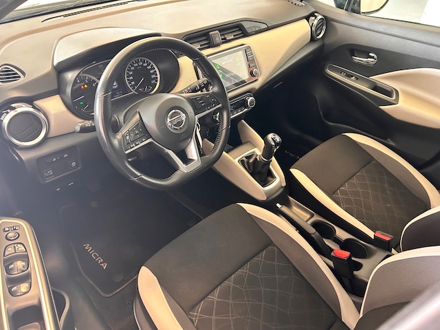 Omdat u nou eenmaal geen ogen in uw achterhoofd heeft, is het altijd lastig om achteruit te rijden zonder brokken te maken. De achteruitrijcamera lost dat probleem op. In deze Micra vindt u schakelaars op het stuur om het navigatiesysteem te bedienen en het audiosysteem met DAB-ontvangst. De automatische airconditioning zorgt voor een behaaglijk klimaat in de auto. Natuurlijk is deze Nissan Micra voorzien van cruise control. Extra opties op deze auto zijn: automatisch dimmende binnenspiegel, lederen stuur, centrale deurvergrendeling met afstandsbediening en boordcomputer.