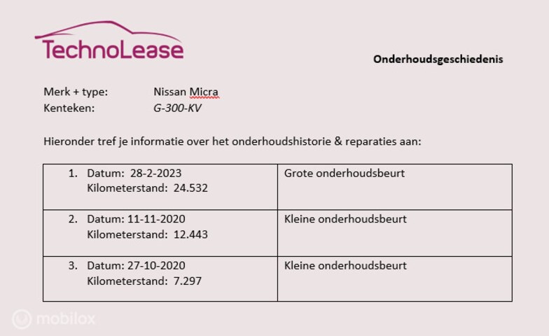 - De volledige onderhoudshistorie is bij ons bekend en gedocumenteerd.
