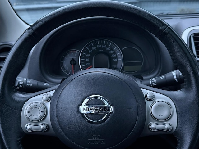 Deze Nissan is voorzien van knoppen op het stuur om het navigatiesysteem en het audiosysteem te bedienen. Met de cruise control kunt u zorgen dat u op die rechte stukken toch uit beeld blijft bij de flitsers. In een auto als deze mag u ook airconditioning verwachten. Extra opties op deze auto zijn: lederen stuur, centrale deurvergrendeling met afstandsbediening, boordcomputer en lederen versnellingspook.