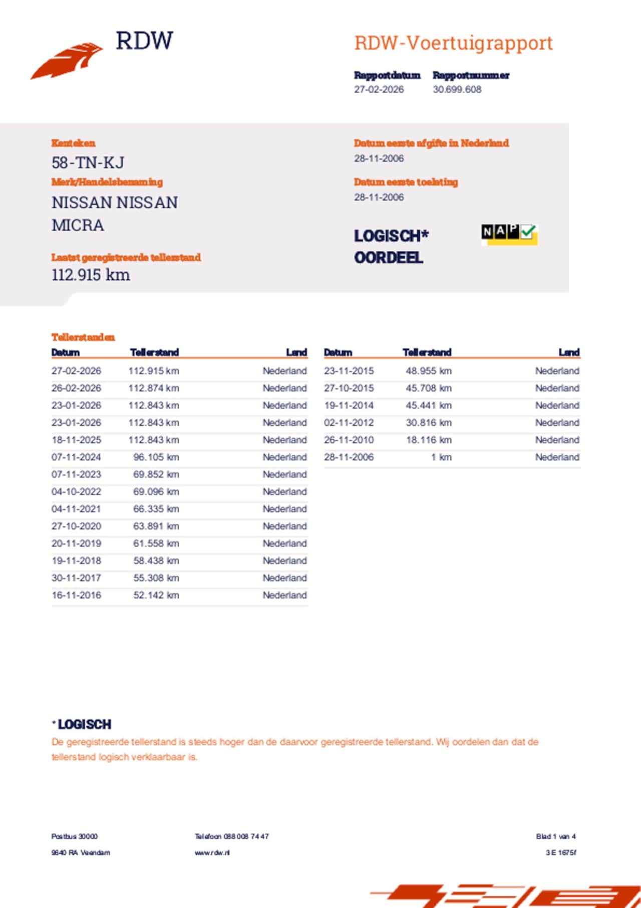 | Kilometerstand | 112.915 km |