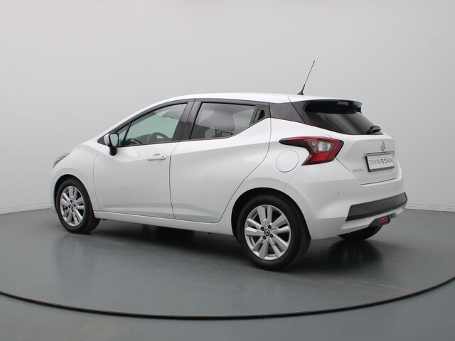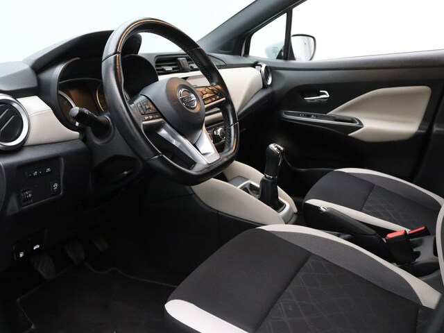 Met de achteruitrijcamera ziet u precies wat er achter de auto gebeurt. Kies de muziek waarvan u houdt, dankzij de DAB-radio klinkt het altijd geweldig. Intussen bedient u het audiosysteem en het navigatiesysteem met de knoppen op het stuur. Omdat u nu eenmaal niet overal ogen heeft, is deze Nissan Micra voorzien van een achteropkomend verkeer waarschuwing die registreert wanneer de afstand tot uw achterligger te krap is. De aanwezige cruise control scheelt lekker in brandstofkosten. En ook bij de flitspaal. In deze auto kiest u zelf uw ideale temperatuur dankzij de airconditioning. De Nissan is standaard voorzien van: lederen stuur, isofix-aansluiting, centrale deurvergrendeling met afstandsbediening en boordcomputer.