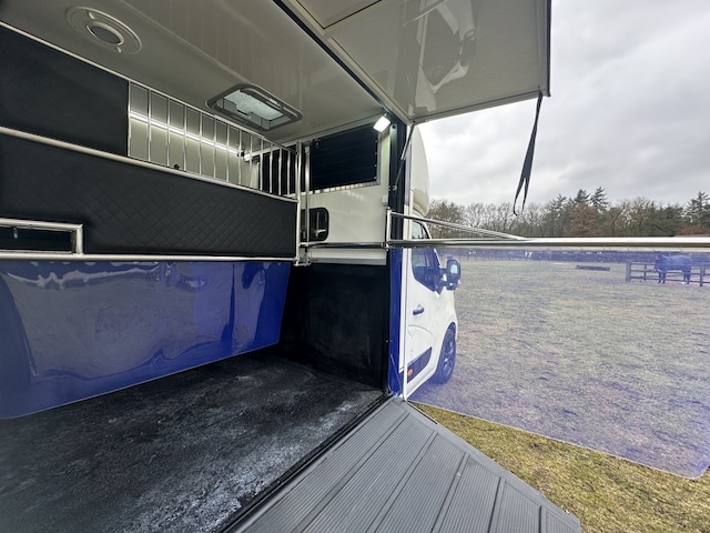 Zeer solide gebouwde RVS pro-safety/hengsten uitvoering met verschuifbaar tussenschot en openslaande tussendeuren. Mogelijkheid om het hoge RVS tussenschot eenvoudig te verschuiven naar de zijwand. Hierdoor ontstaat er een grote box wat ideaal is voor het vervoeren van merrie met veulen. Binnen hoogte van 235cm wat deze zeer geschikt maakt voor grote paarden. Luxe uitvoering met dubbel camera systeem met LCD scherm, 2-kleurig spuitwerk, airco, trekhaak, gespleten licht gewicht zijlader, LED dag/nacht verlichting binnen, ventilatie in paardengedeelte, handige opberg schappen, luxe lederen bekleding, etc. etc.