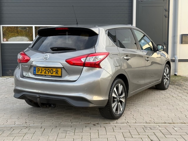 Graag tot ziens bij Tyam Auto's te EnschedeHier is een voorbeeld van een advertentietekst voor de Nissan Pulsar: Deze prachtige grijze Nissan Pulsar 1.2 DIG-T N-VISION uit 2017 is een geweldige auto die van alle gemakken is voorzien. Met 186046 kilometer op de teller is deze auto nog in uitstekende staat en klaar voor vele comfortabele kilometers. Met een handgeschakelde 6-bak transmissie is deze hatchback 5 deurs een genot om in te rijden. De lichtmetalen velgen van 17 inch geven de auto een sportieve uitstraling, terwijl de trekhaak het mogelijk maakt om extra bagage mee te nemen op vakantie. Deze Nissan Pulsar is voorzien van een uitgebreid scala aan accessoires, waaronder een lichtsensor, automatische airconditioning, cruise control en LED-verlichting. De surround view camera en navigatiesysteem zorgen ervoor dat u altijd de controle houdt over uw rit, terwijl het sportstuur en de comfort stoelen zorgen voor een aangename ride. Daarnaast is deze auto uitgerust met een Bluetooth carkit, radio/CD/MP3 speler en een USB en Aux aansluiting, zodat u altijd kunt genieten van uw favoriete muziek tijdens het rijden. Het interieur van de Nissan Pulsar is voorzien van lederen bekleding, een elektrisch verstelbaar en inklapbaar buitenspiegel, een multifunctioneel stuur en een automatisch dimmende binnenspiegel. Met 6 maanden landelijke garantie, uitbreidbaar tot 12/24 maanden, kunt u met een gerust hart de weg op gaan. Deze auto is niet alleen comfortabel en luxe, maar ook veilig. Met centrale deurvergrendeling, kinderzitje voorbereiding ISOfix en snelheidsbegrenzer biedt deze auto maximale veiligheid voor u en uw gezin. Kortom, deze Nissan Pulsar is een complete en betrouwbare auto die van alle gemakken is voorzien. Met zijn unieke accessoires en bijzonderheden is dit de ideale auto voor iedereen die op zoek is naar comfort, luxe en rijplezier. Neem contact met ons op voor een proefrit of kom langs om deze mooie auto te bekijken.