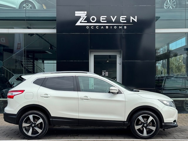 Met een auto als deze Nissan Qashqai komt u absoluut goed voor de dag. De aandrijving van deze Nissan wordt verzorgd door een viercilinder motor en een automatische transmissie. Overdag een weidse zichthoek en 's avonds het lichtspel in de binnenruimte: dat geeft het glazen panoramadak! Bij de uitrusting van deze Nissan horen onder meer 18 inch lichtmetalen velgen, LED-dagrijverlichting, extra getint glas en in delen neerklapbare achterbank.